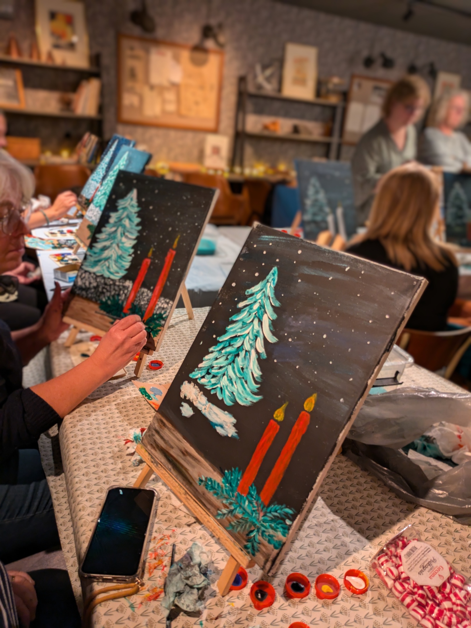 Vi målar samma motiv igen tillsammans med er. En kreativ upplevelse som är både rolig och lätt att hänga med i!